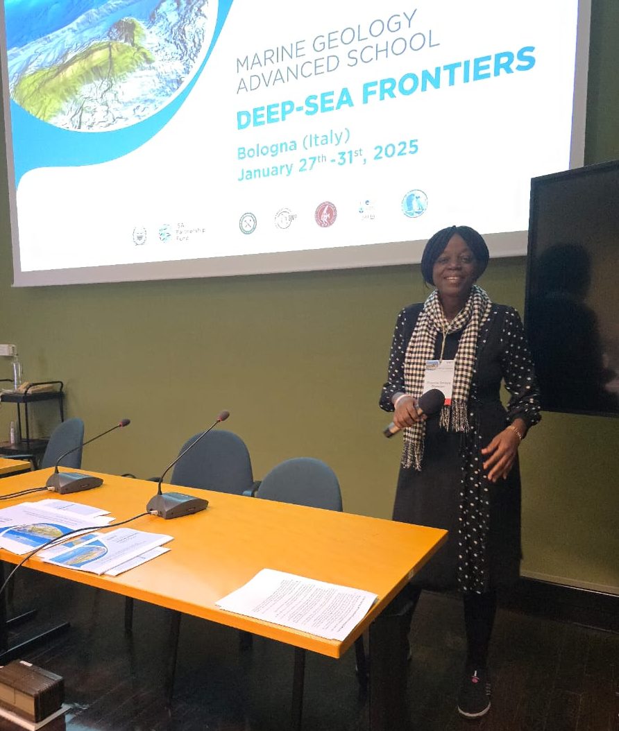 Subsequent training through the Marine Geology Advanced Winter School in Italy organized by the Consiglio Nazionale delle Ricerche (CNR) and supported by the International Seabed Authority Partnership Fund (ISAPF), and the BAIT training in benthic biogeological survey through the Knowledge Exchange Fellowship organized by Biosfera in conjunction with the African Network of Deep Waters Researchers (ANDR) in Cabo Verde expanded Oluwadare’s applied skill set, from geophysical interpretation to marine spatial planning to seabed habitat classification. These experiences now directly inform her work at Nigeria’s National Centre for Marine Geosciences, where she contributes to marine geological research, environmental baseline studies and science-policy advisory processes that support Nigeria’s engagement in international ocean governance.