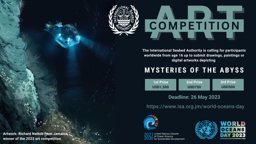 The theme of the World Oceans Day in 2023 is “Planet Ocean”. To mark this day, ISA is launching its third World Oceans Day art competition on the theme “Mysteries of the Abyss”, including a local competition for elementary school students under age 16 in Jamaica and a global competition for participants worldwide from age 16 up.